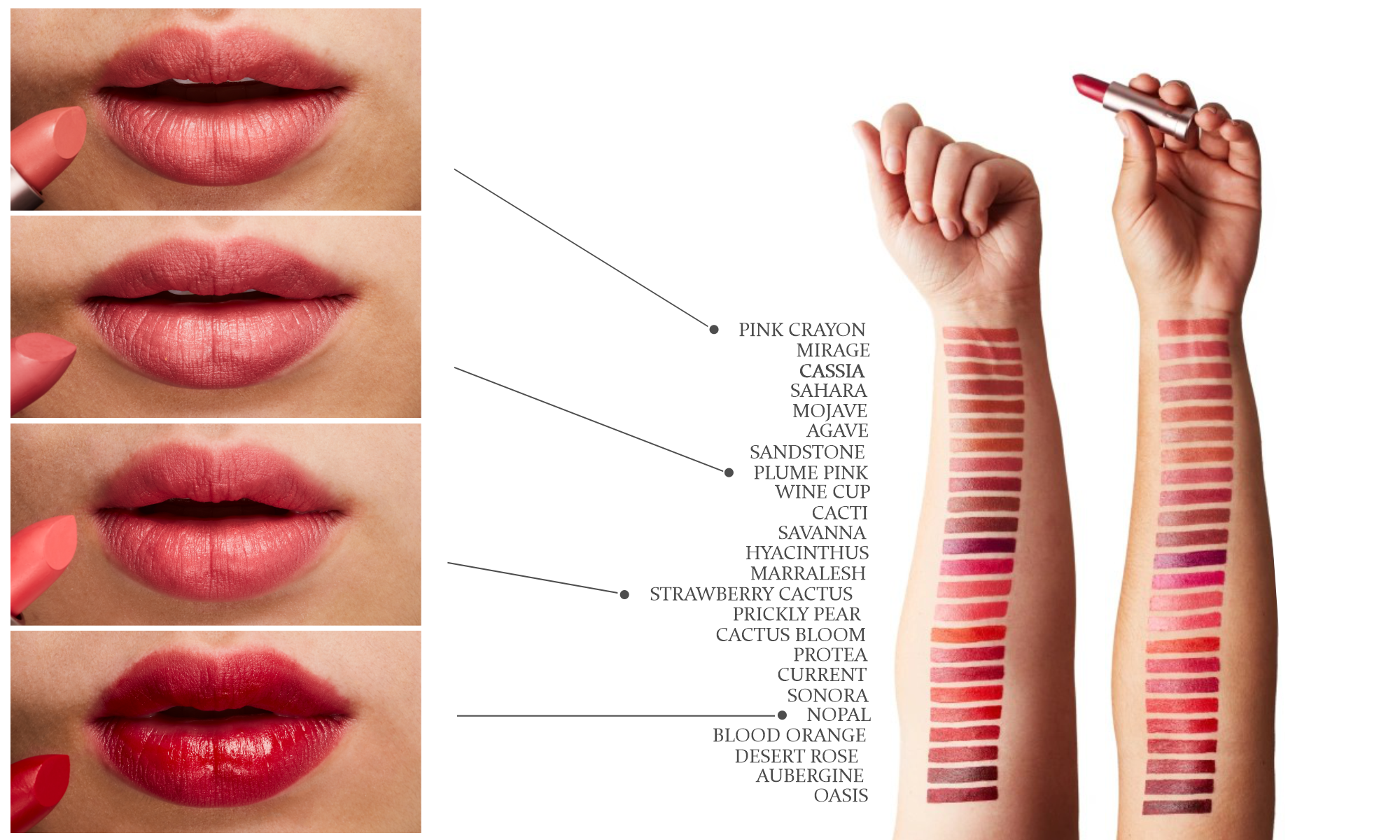 Full ingredients : Caprylic/Capric Triglyceride (MCT Coconut Oil), Euphorbia Cerifera (Candelilla) Wax, Ricinus Communis (Castor) Seed Oil, Heptyl Undecylenate (From Castor Seed Oil), Silica (From Bamboo), Hydrogenated Vegetable Oil (From Sunflower and Olive Oil), Oleic/Linoleic/Linolenic Polyglycerides (From Sunflower Oil), Crambe Abyssinica Seed Oil (From Crambe Plant), Phytosterol Esters (From Sunflower Oil), Theobroma Cacao (Cocoa) Seed Butter, Fragaria Ananassa (Strawberry) Fruit Extract, Punica Granatum (Pomegranate) Fruit Extract, Vaccinium Myrtillus (Bilberry) Fruit Extract, Rubus Idaeus (Raspberry) Fruit Extract, Vitis Vinifera (Grape Skin) Extract, Vaccinium Angustifolium (Blueberry) Fruit Extract, Rubus Fruticosus (Blackberry) Fruit Extract, Beta Vulgaris (Beet) Root Extract, Rubus Leucodermis (Black Raspberry) Extract, Euterpe Oleracea (Acai) Fruit Extract, Bixa Orellana (Annatto) Seed Extract, Daucus Carota Sativa (Carrot) Root Extract, Prunus Cerasus (Cherry) Extract, Curcuma Longa (Turmeric) Root Extract, Active Carbon (Activated Bamboo Charcoal), Prunus Armeniaca (Apricot) Kernel Oil, Lecithin (From Sunflower), Butyrospermum Parkii (Shea) Butter, Helianthus Annuus (Sunflower) Seed Oil, Tocopherol (Vitamin E), Ascorbyl Palmitate (Vitamin C), Rosmarinus Officinalis (Rosemary) Leaf Extract, Citric Acid (From Citrus). May contain: CI 15850, CI 77491, CI 77891, CI 45410, CI 19140, CI 77499, CI 15850, CI 75810