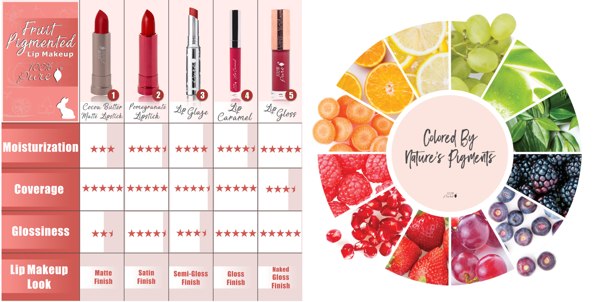 A. The vibrant colors of the lip gloss are derived from antioxidant-rich pigments found in fresh fruits.
