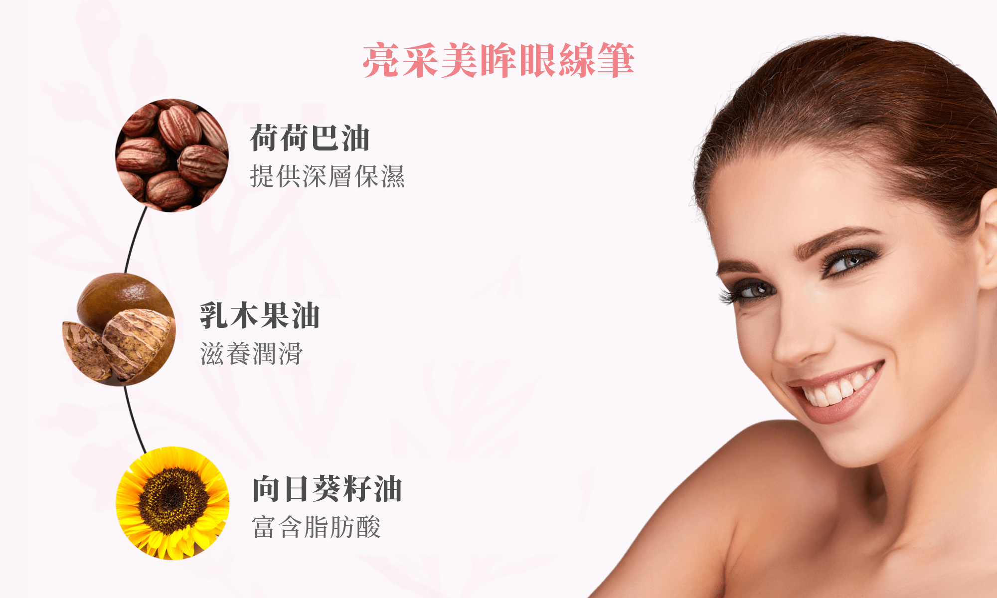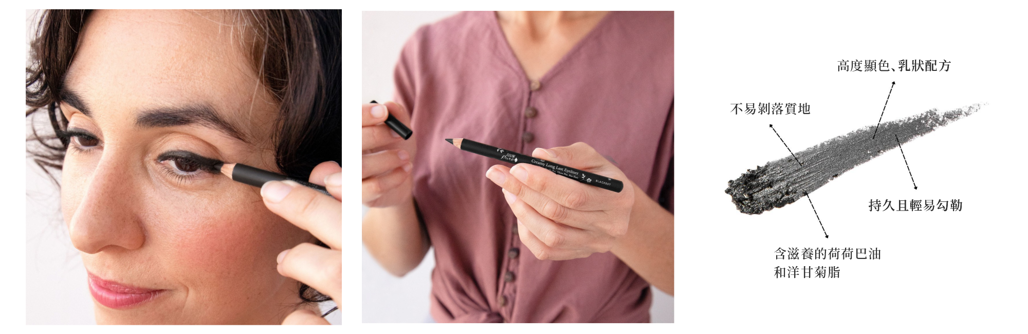 使用方法 : 在眼瞼上盡可能靠近睫毛沿著眼型畫上一條線。 以短線條方式畫出平滑的線條。 要營造煙燻眼效果,可用眼影刷將線條均勻塗開。