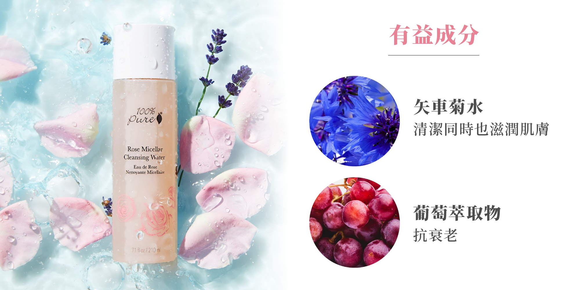 100% Pure玫瑰膠束卸妝水