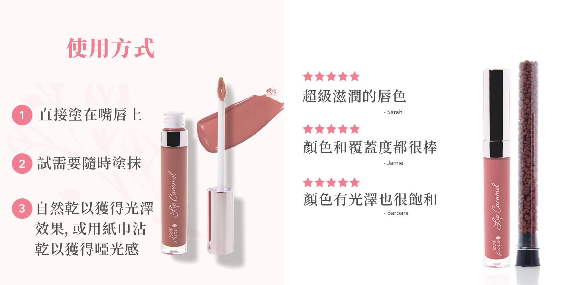 使用方法 : 直接塗抹在雙唇上,視需要加深打造大膽濃郁的色彩。