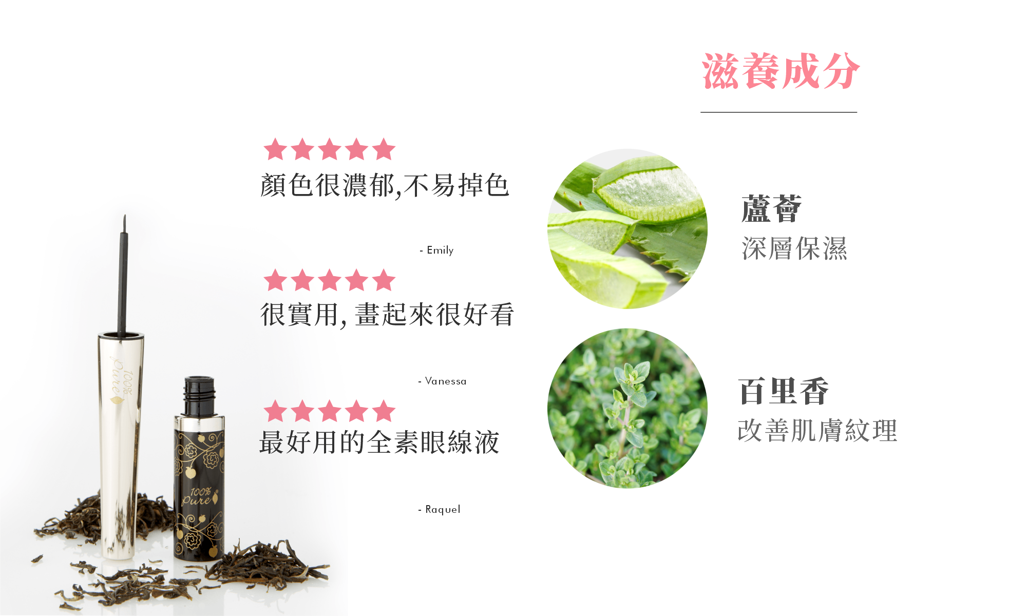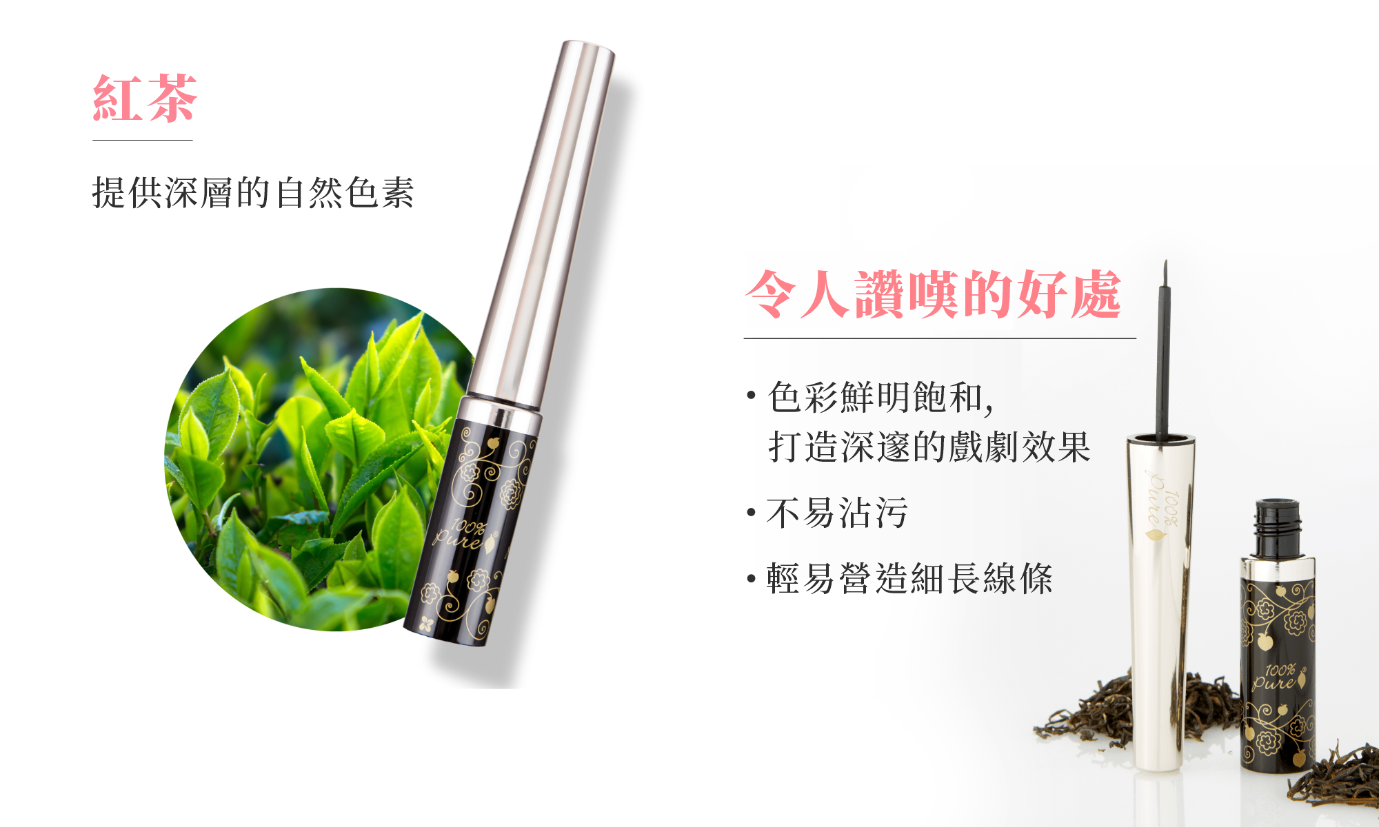 採用紅茶的豐富自然色素,具有深邃濃烈的色彩。 配方具抗撥水性,不易暈開或剝落。 富含保濕的蘆薈和滋養的可可脂,不含人造香料,合成防腐劑和石化染料。保護雙眸不費力。